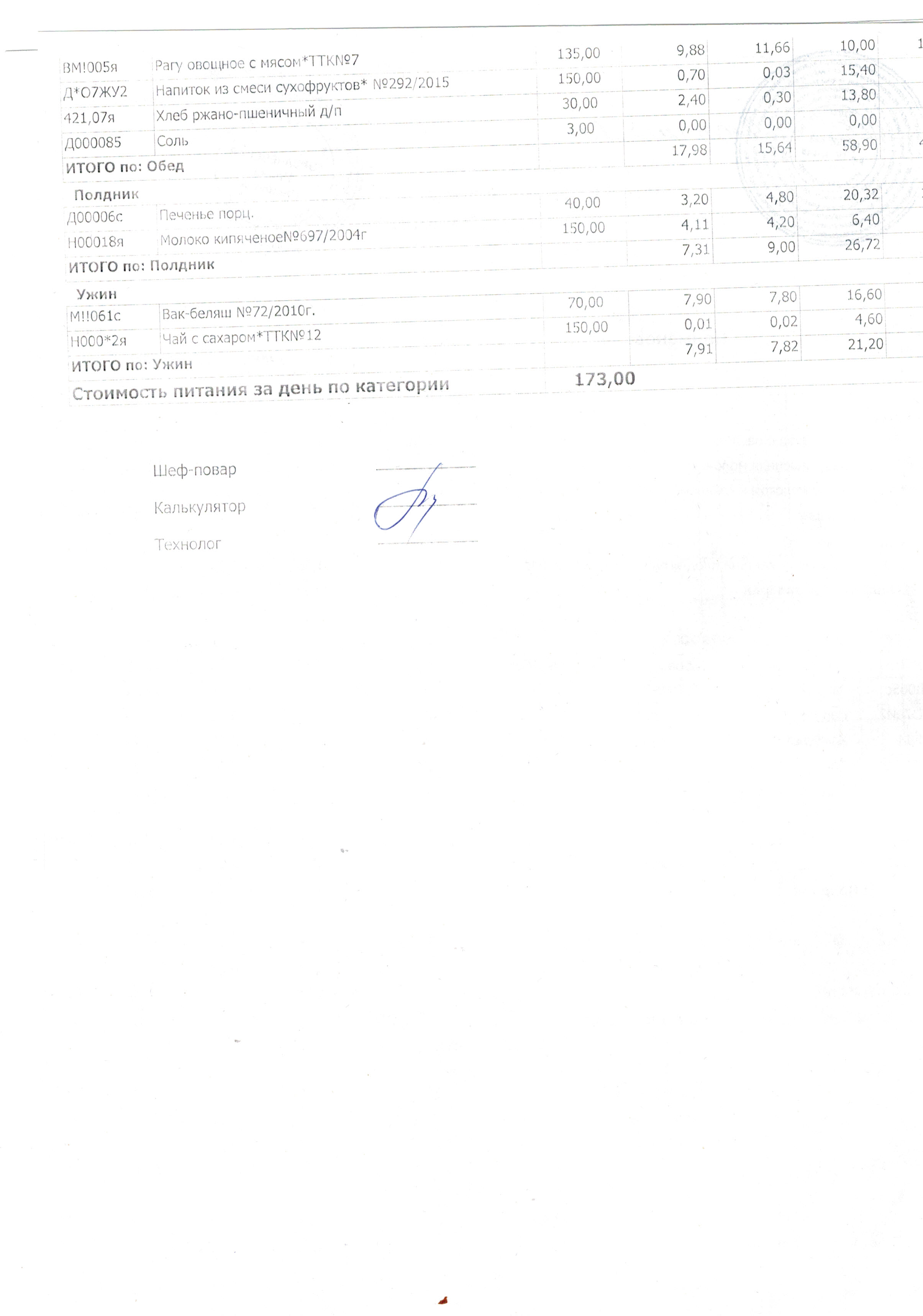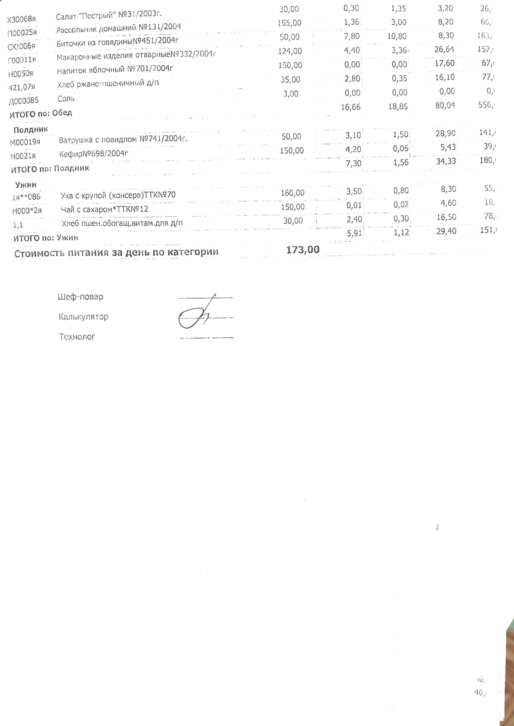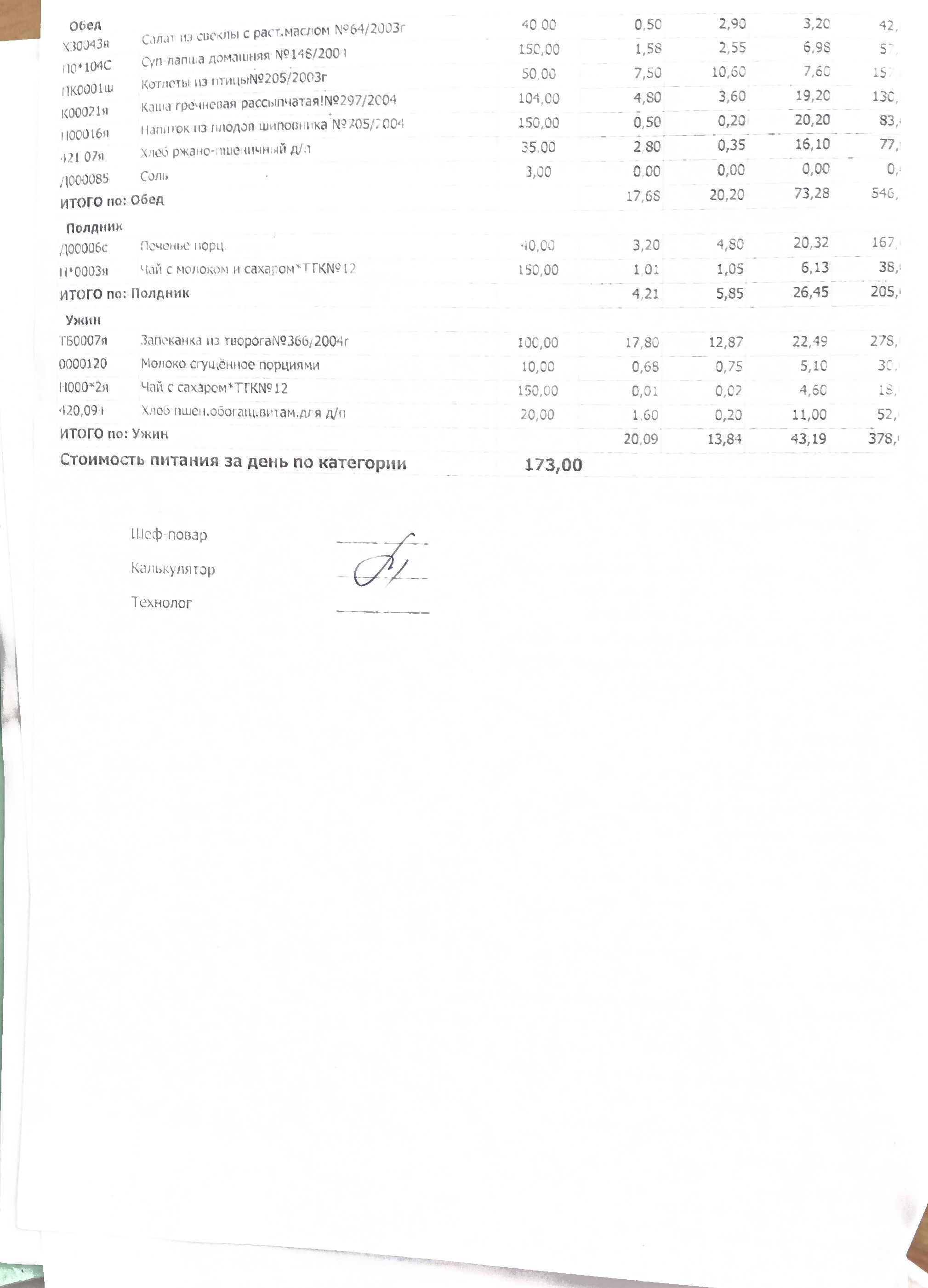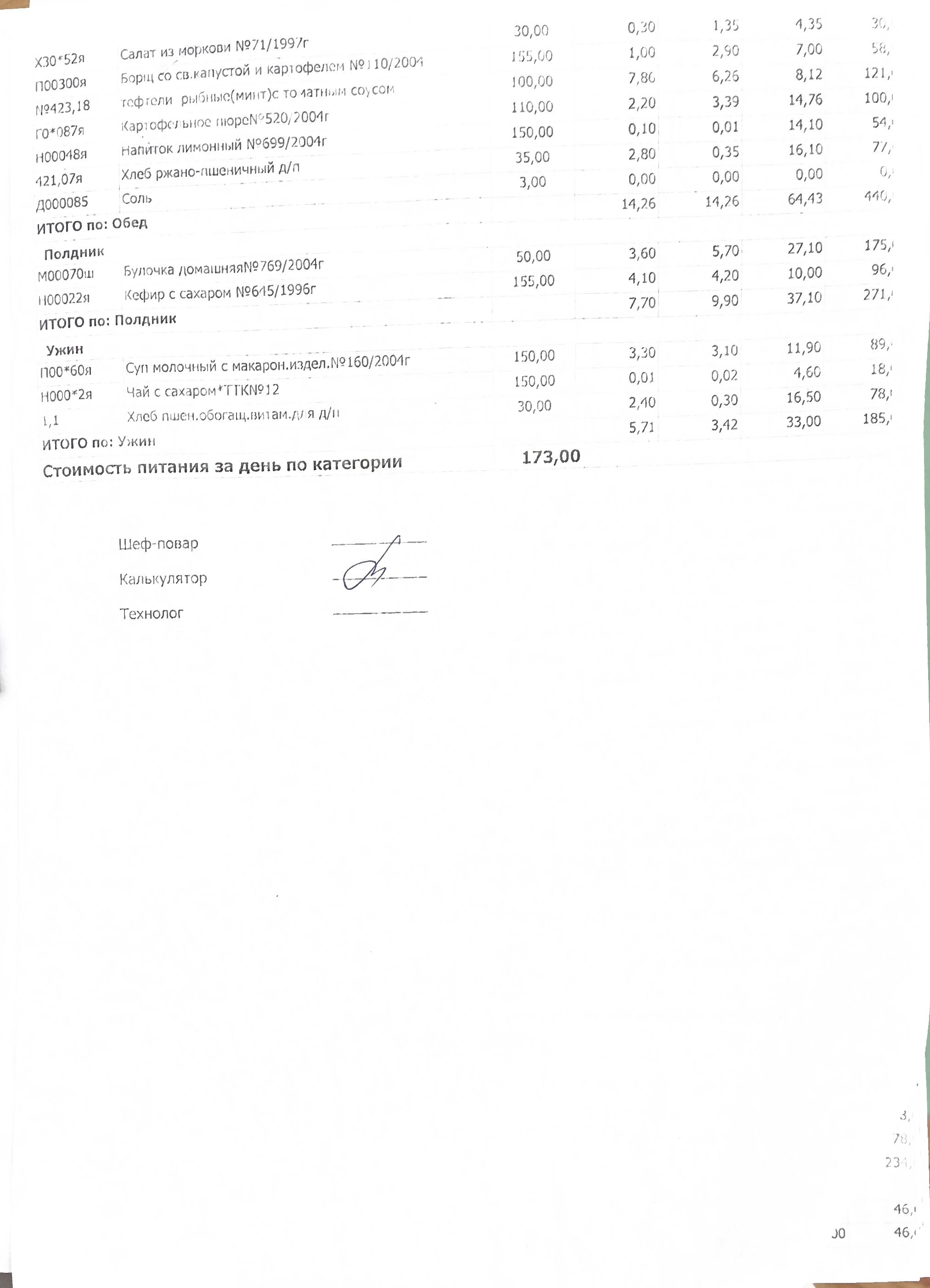 Стоимость питания